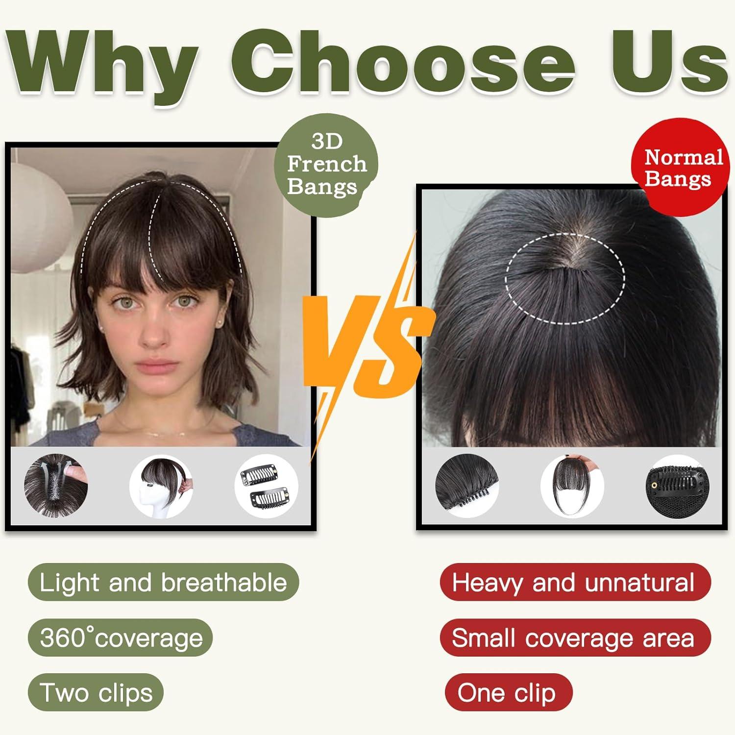 【Preminum Human Hair】This Bangs Hair Clip is made from 100% human hair bangs clip on, Hair is softer, smoother,fluffy, natural,glossy and less tangled.Can be curled straightened and . Create the most integrated and realistic natural effe. Fake bangs blend well with your own hair, make the effect more realistic and natural,frames your face perfectly!