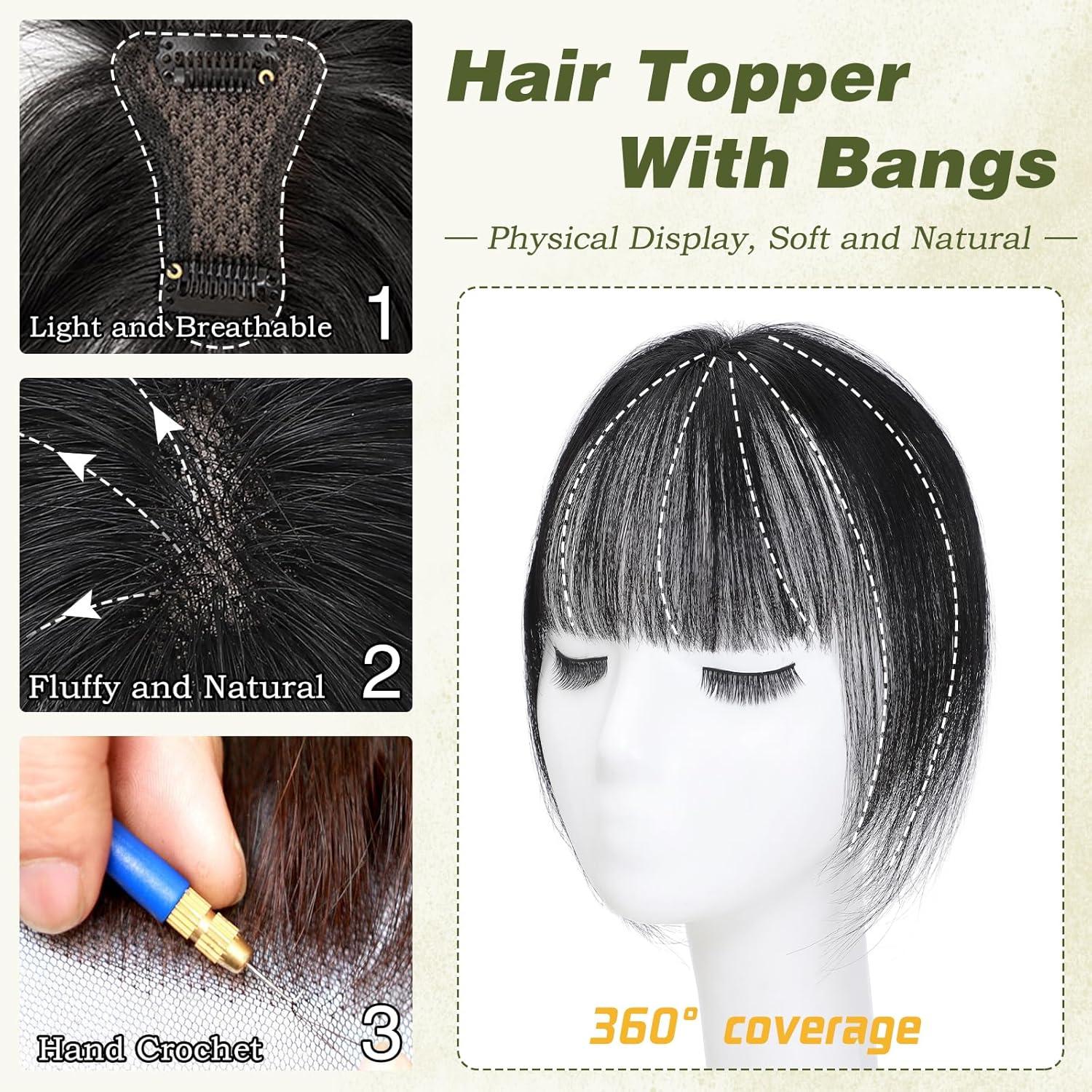 【Large Coverage Area】Compared with other bangs, our clip in bangs human hair can cover the top of your head 360°, blending in with your own hair. This hair toppers for women real human hair can solve hair problems such as wide hair gaps, high hairlines,and covere gray hair on the top of the head. Presents extremely realistic effects!