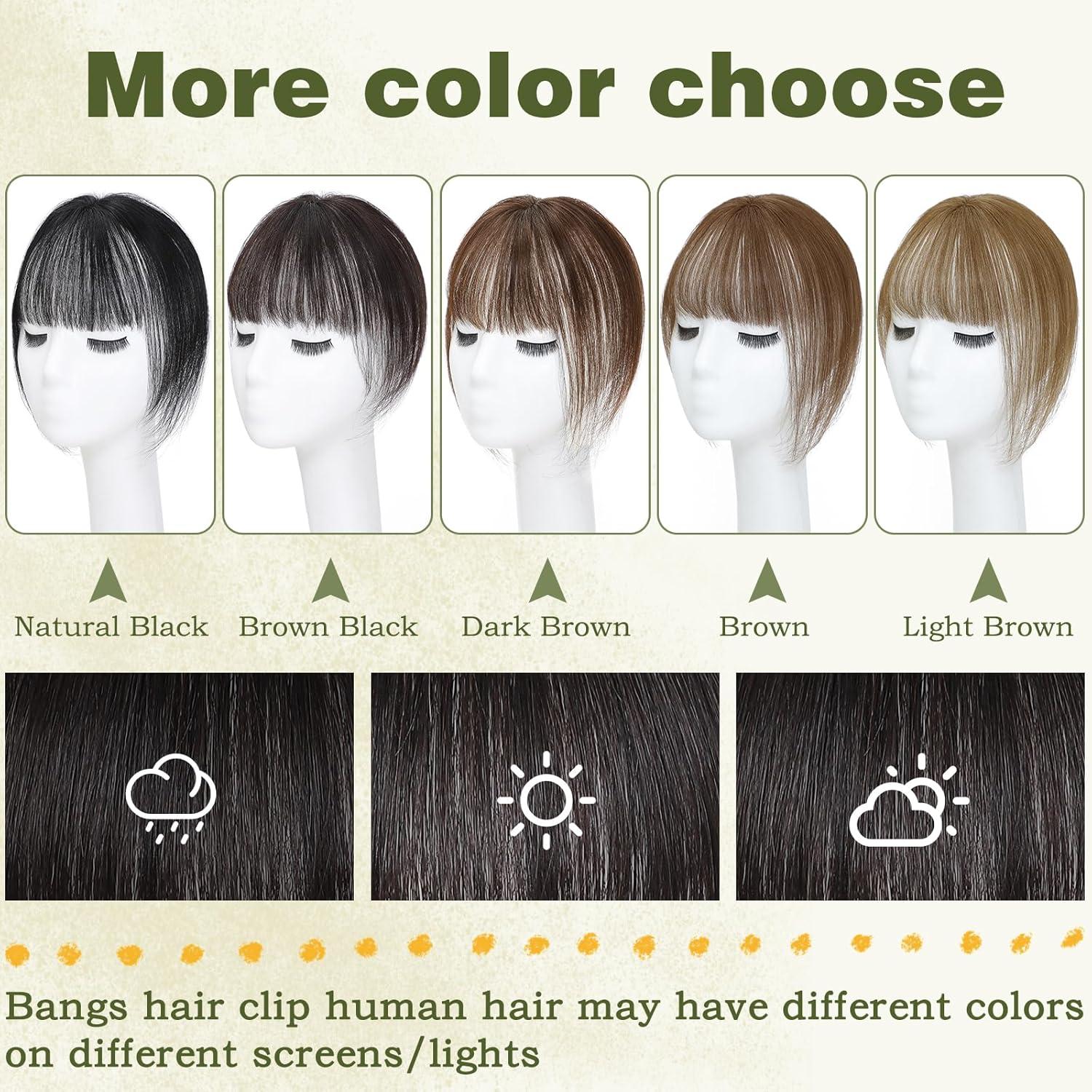 NAYOO Bangs Hair Clip 100% Real Human Hair Toppers 360°3D Cover Clip in Bangs Hair pieces Wispy Bangs for Women French Bangs for Daily Wear(Medium Brown)(Natural Black)