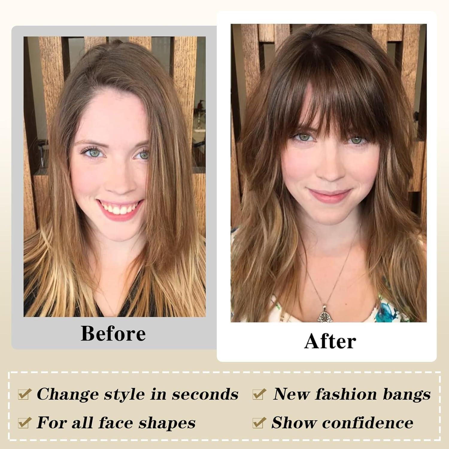 ☘ Perfectly Shape Your Face: Wispy bangs & French bangs. The length and width are perfect for different face shapes. Wispy bangs with hair temples , it looks very cute and nifty.This hairstyle is thin and gives a refreshing feel and is the most popular see-through bangs hairpin. French bangs have enough thickness to cover your forehead without worrying about wispy. The hair temples on both sides can correct different facial contours. You can also trim it when it is too long or not needed.