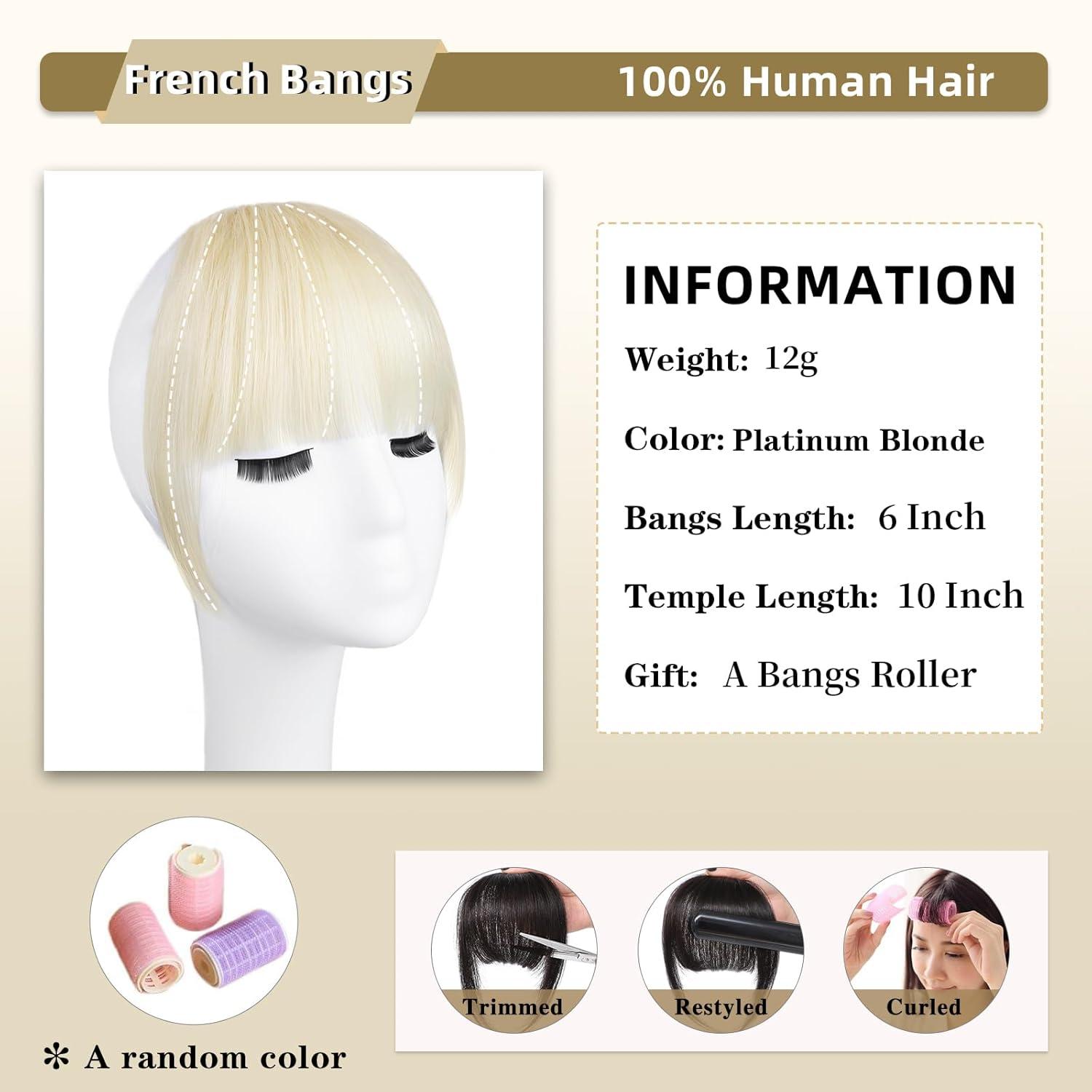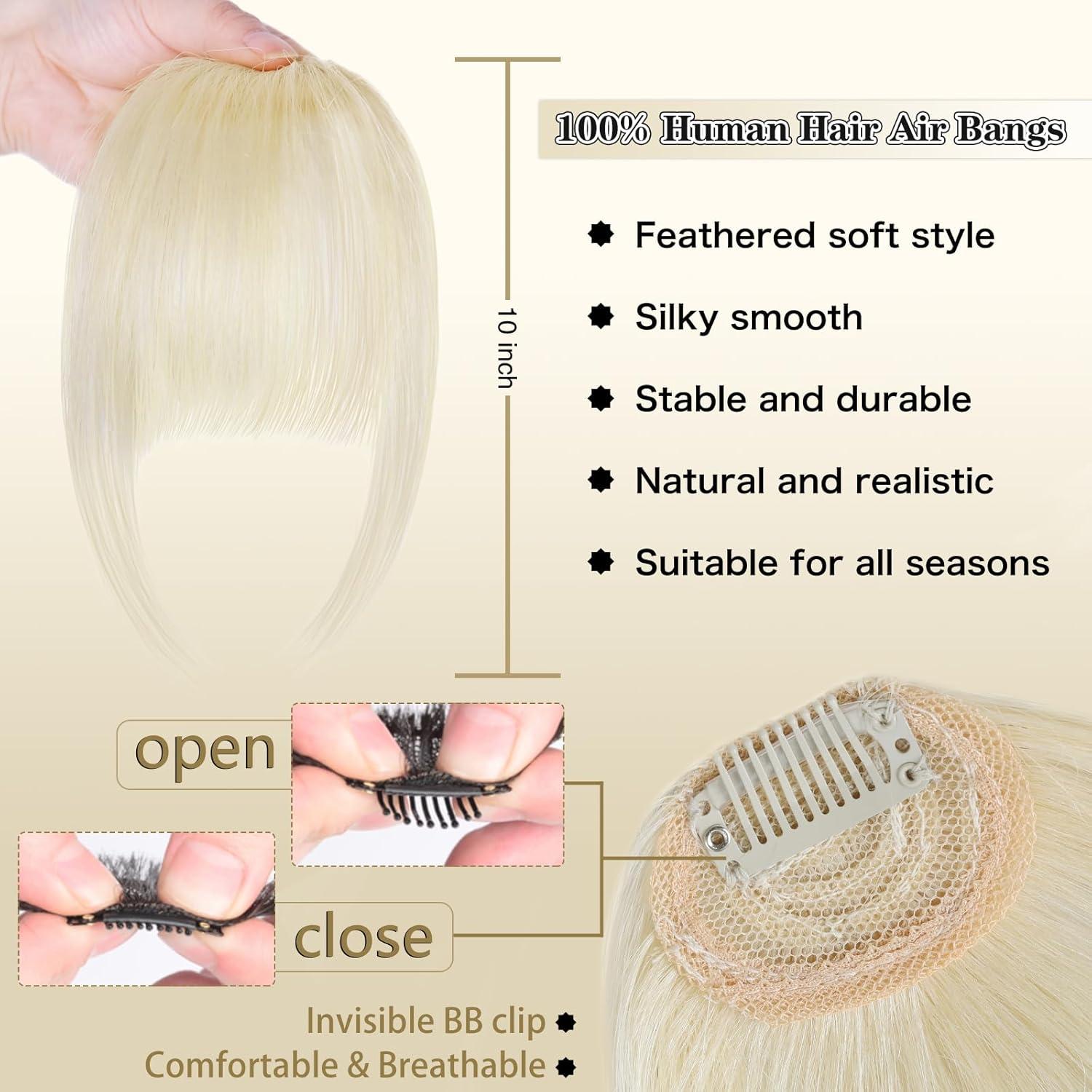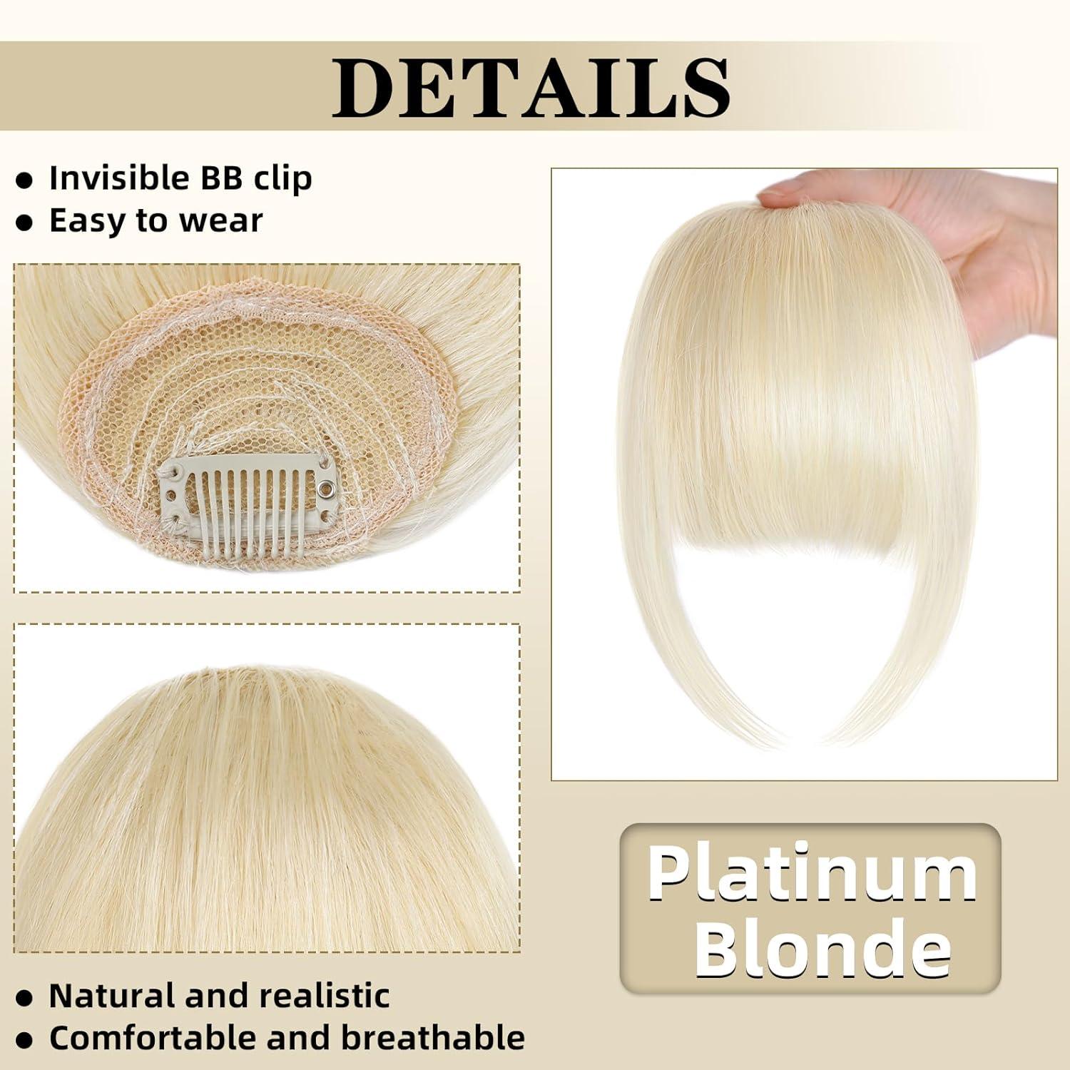 NAYOO Bangs Hair Clip -Ash Blonde Fake Bangs 100% Real Human Hair Extensions Wispy Bangs for Women Fringe with Temples Hairpieces Curved Bangs for Daily Wear(Platinum Blonde)