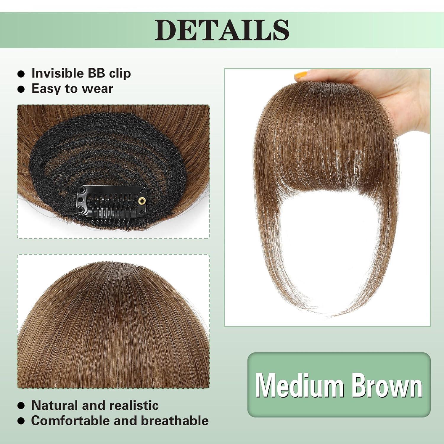 NAYOO Bangs Hair Clip – Moca Brown Fake Bangs 100% Real Human Hair Extensions Wispy Bangs for Women Fringe with Temples Hairpieces Curved Bangs for Daily Wear(Medium Brown)