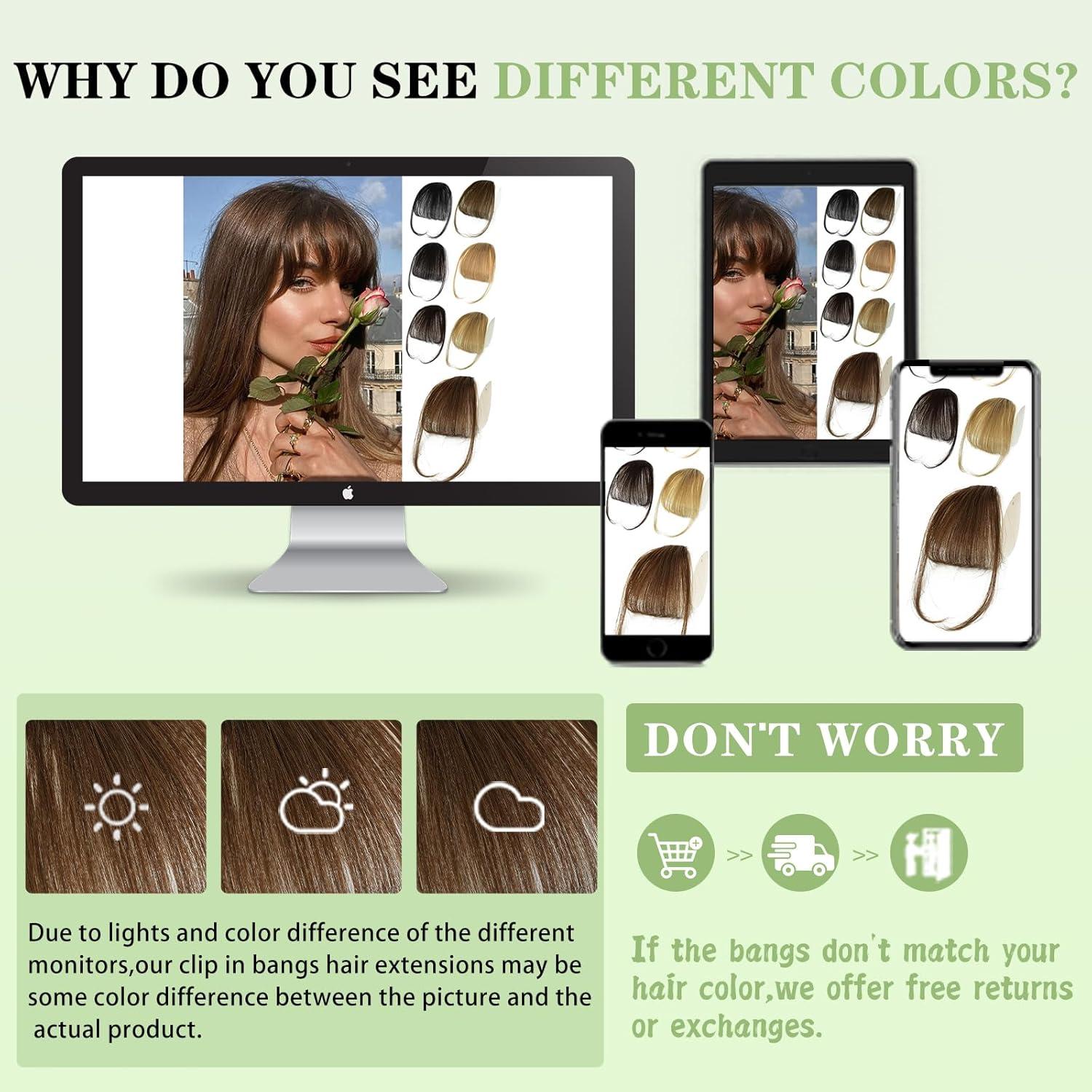 ☘ Color Choice: Each color swatch or photo shown can vary slightly from screen to screen as well as production batch as components of the clip on bangs human hair are handmade. Please feel free to contact us if you have any problems, we support replacements and refunds. No risk! Please feel free to contact us.