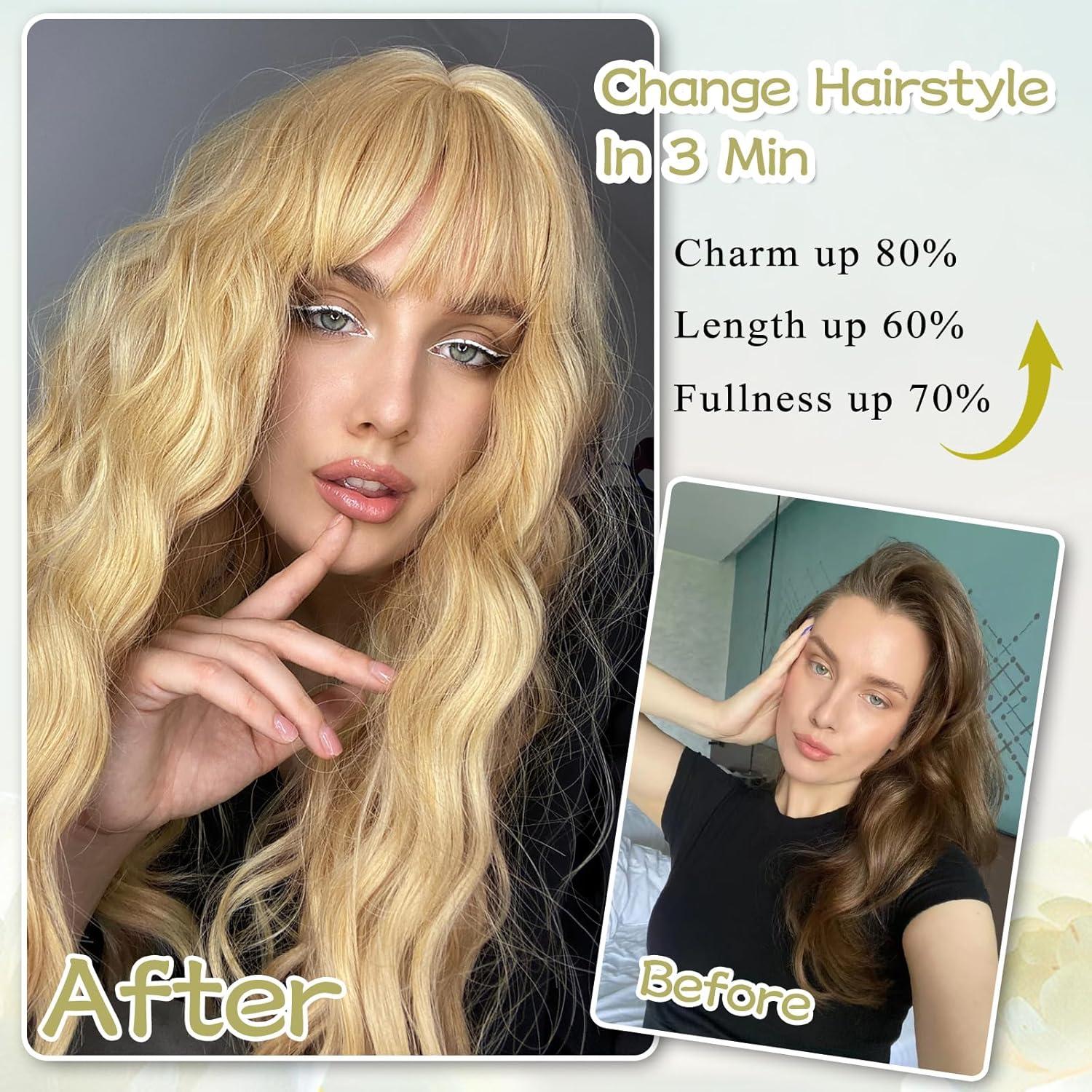 🌸【Economical & Widely Used】:The wig with bangs is perfect for daily use, work, Halloween, concerts, theme parties, weddings, dating, and so on. It is suitable for any face shape. A natural wavy and stylish appearance helps you change your style and become more confident and charming.