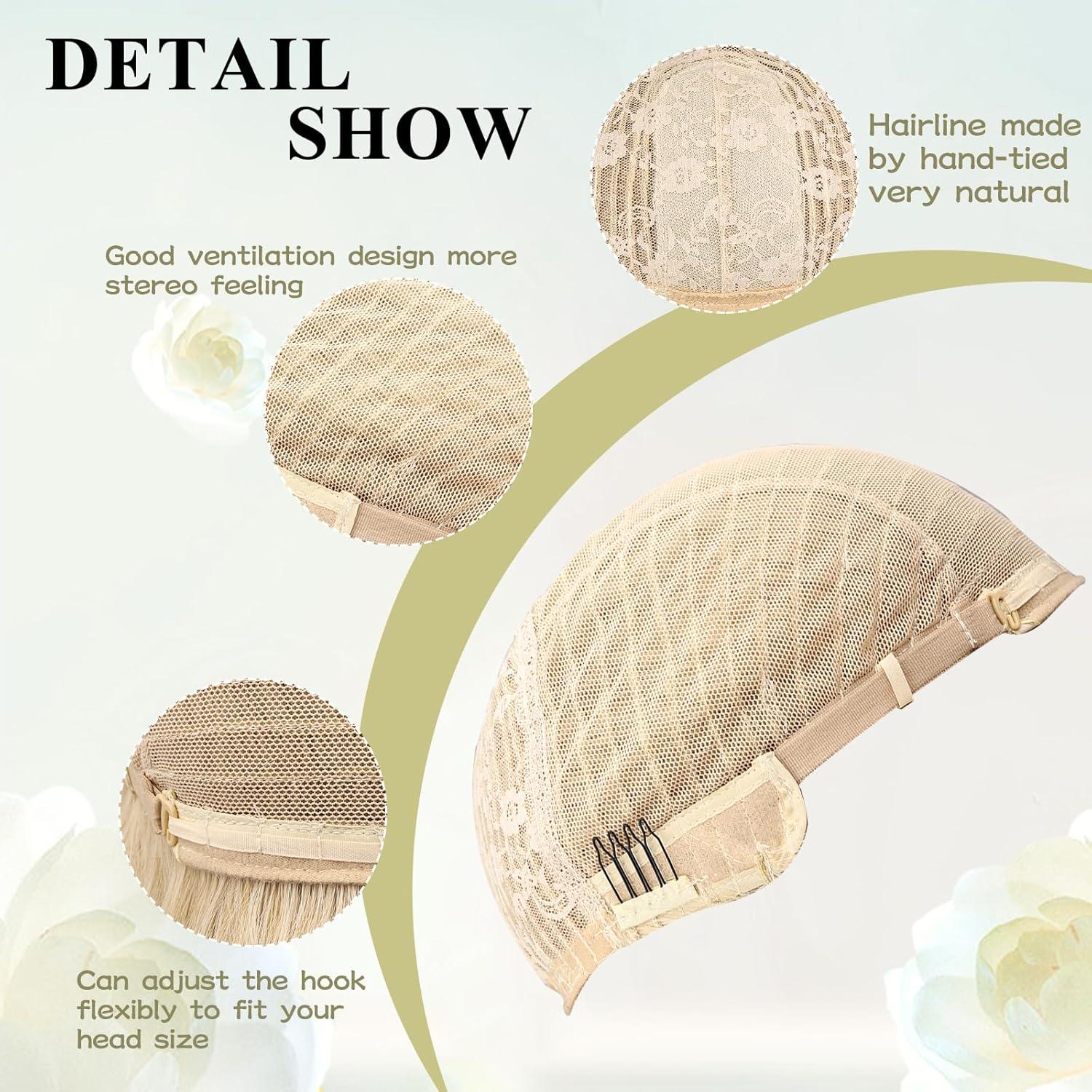 🌸【Adjustable Wig Cap】:Our wig cap is about 22-24 inches. Two elastic adjusting straps can be adjusted according to different head circumferences to achieve a more comfortable and secure fit. The other two clips make the wig more firm. Easy to install and remove.