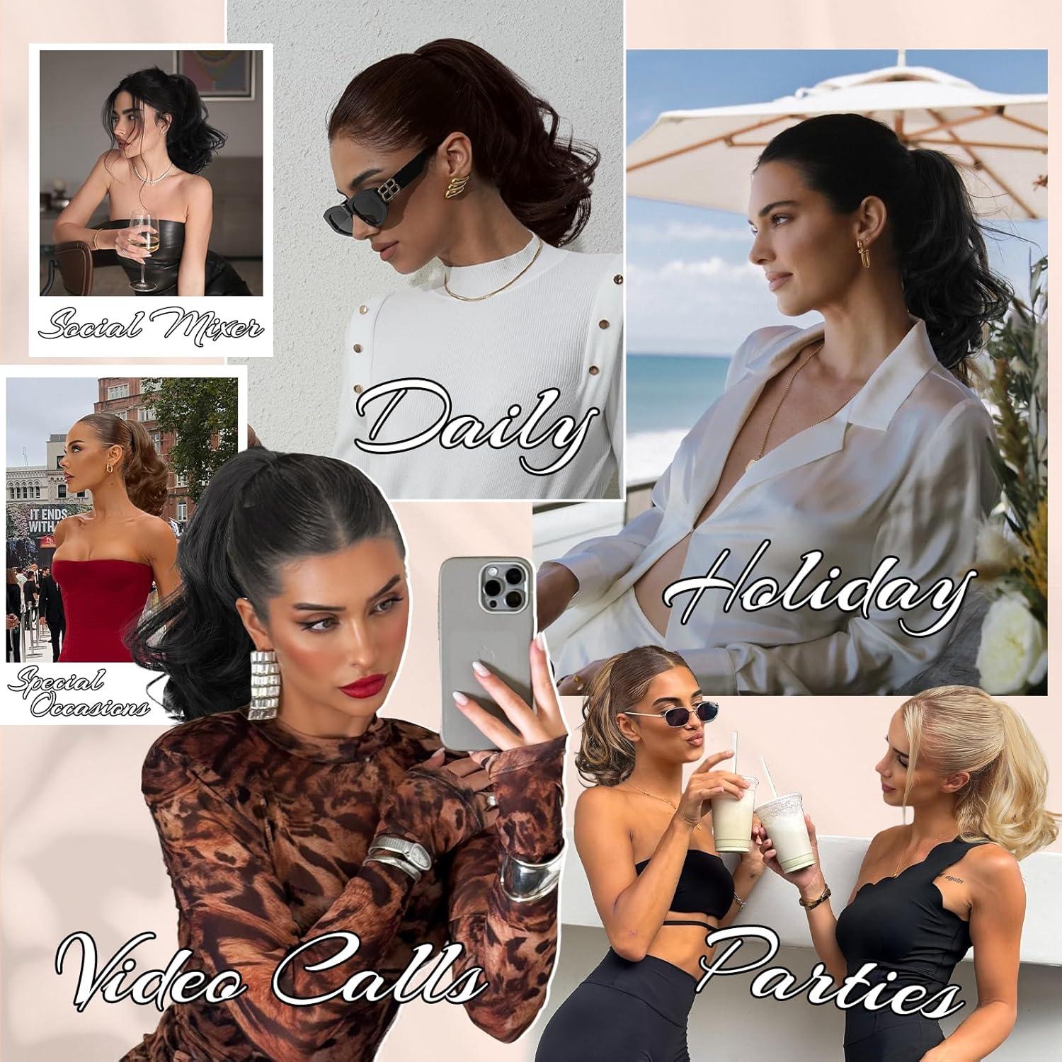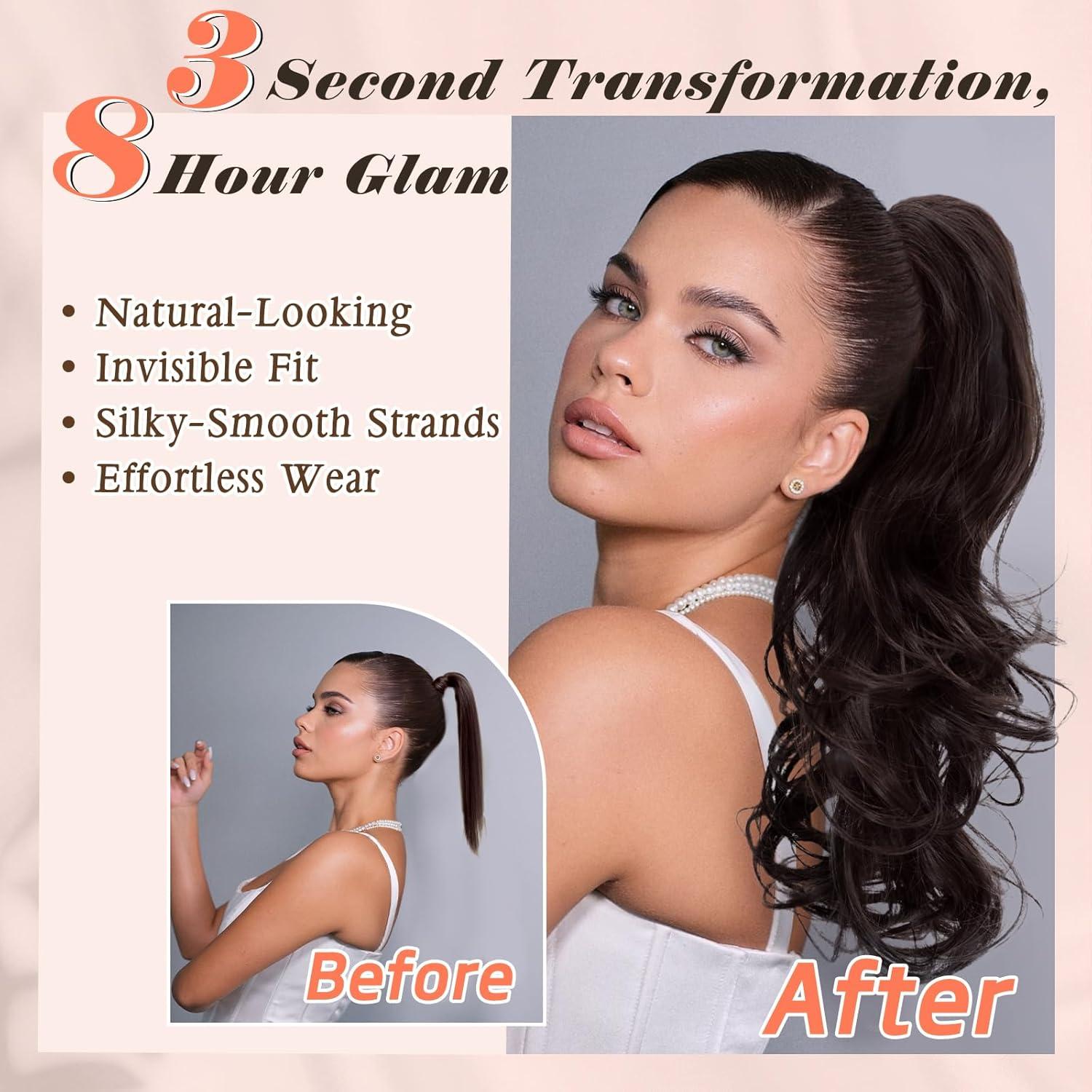 【Gorgeous Layered Wave】Designed with artfully layered waves that enhance your natural beauty, these premium ponytail extensions deliver charm with effortless grace. Perfect for: gym sessions, date nights, office day looks, festival-ready looks.
