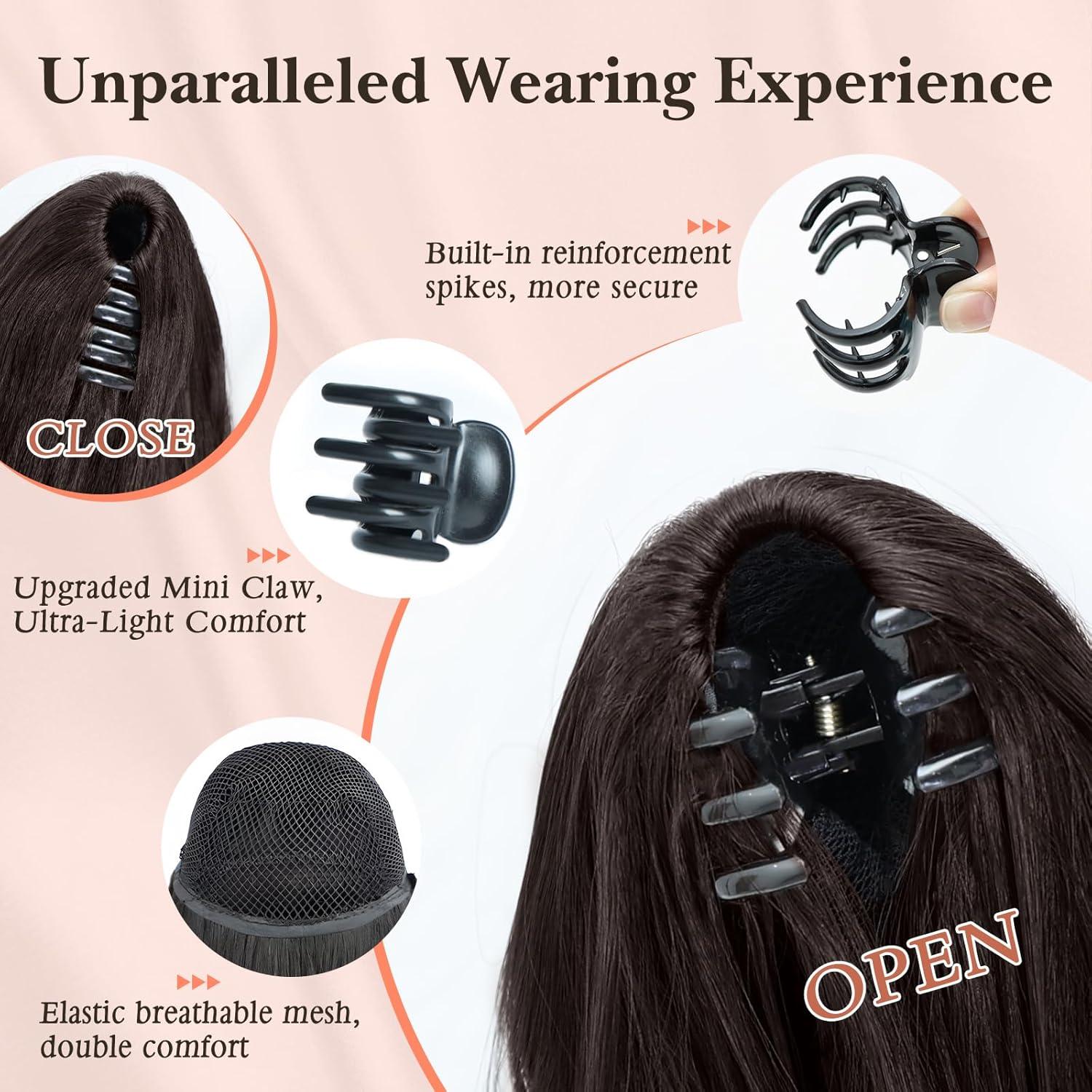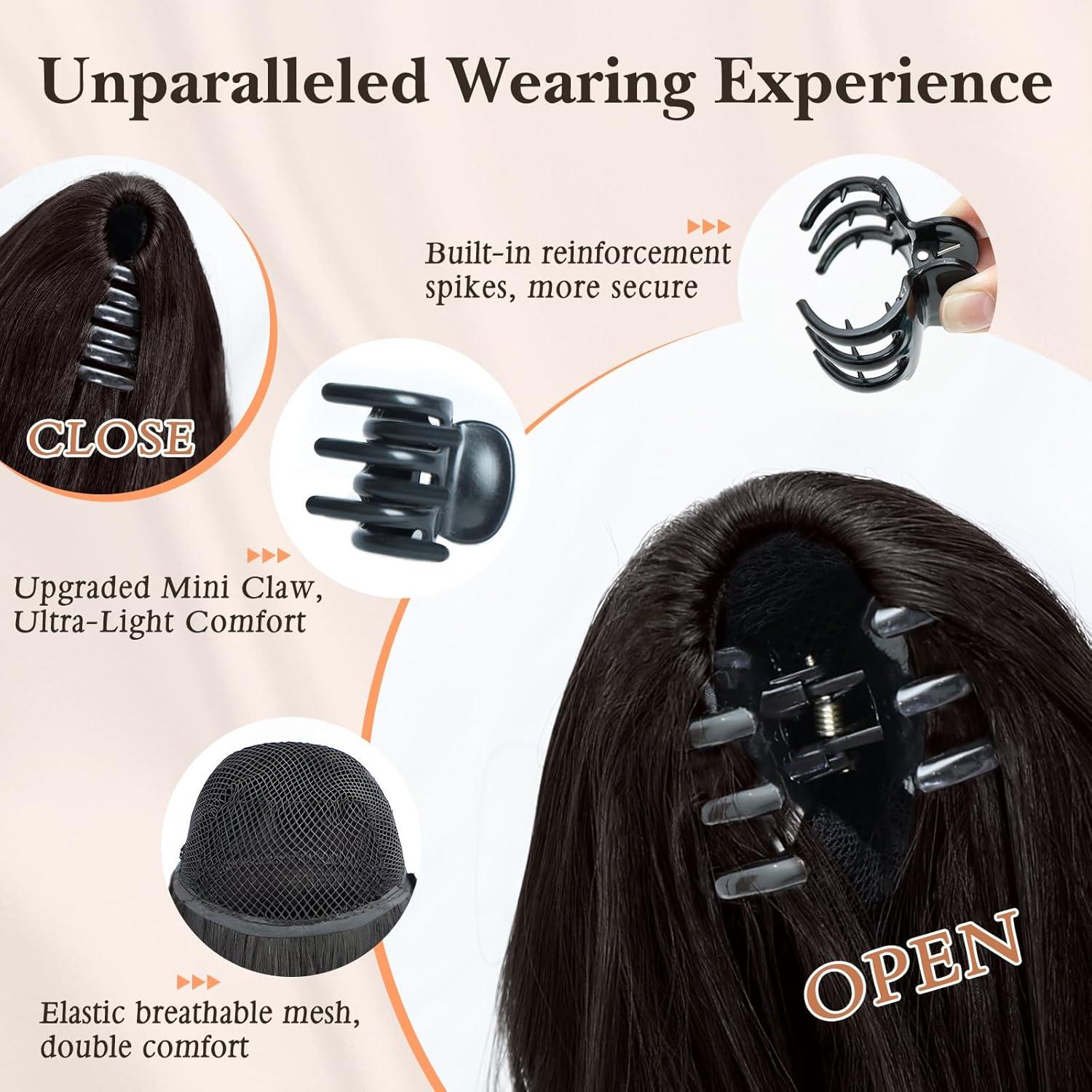 【Easy to wear】Clip and go for salon volume. Secure mini clip design—zero slippage, no tugging, even on fine hair. 3-second painless ponytail magic.