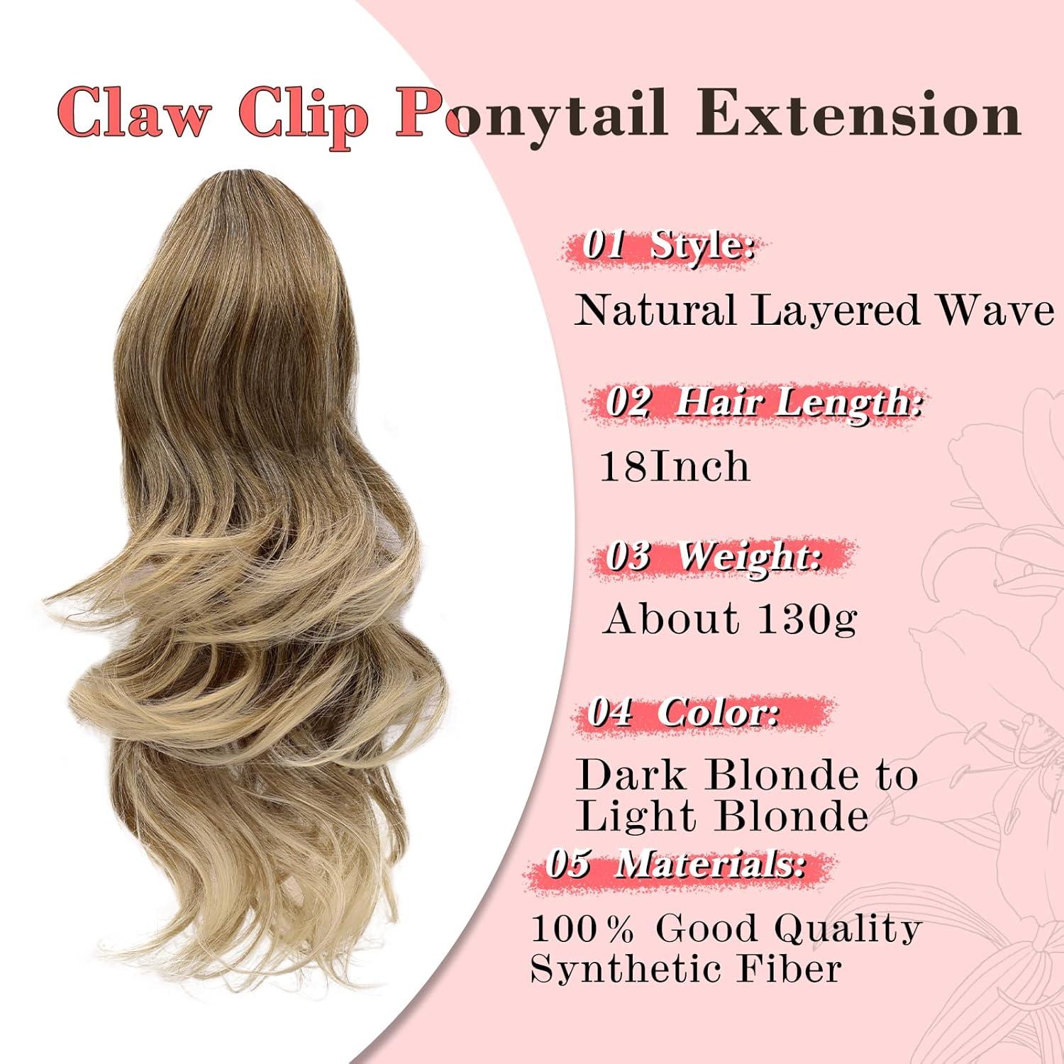 NAYOO Claw Clip Ponytail Extension Black 12″ Short Wavy Ponytail Clip in Hair Extensions for Women Curly Natural Layered Pony Tails for Short Thin Hair Synthetic Hairpiece(Black)(Dark Blonde to Light Blonde)