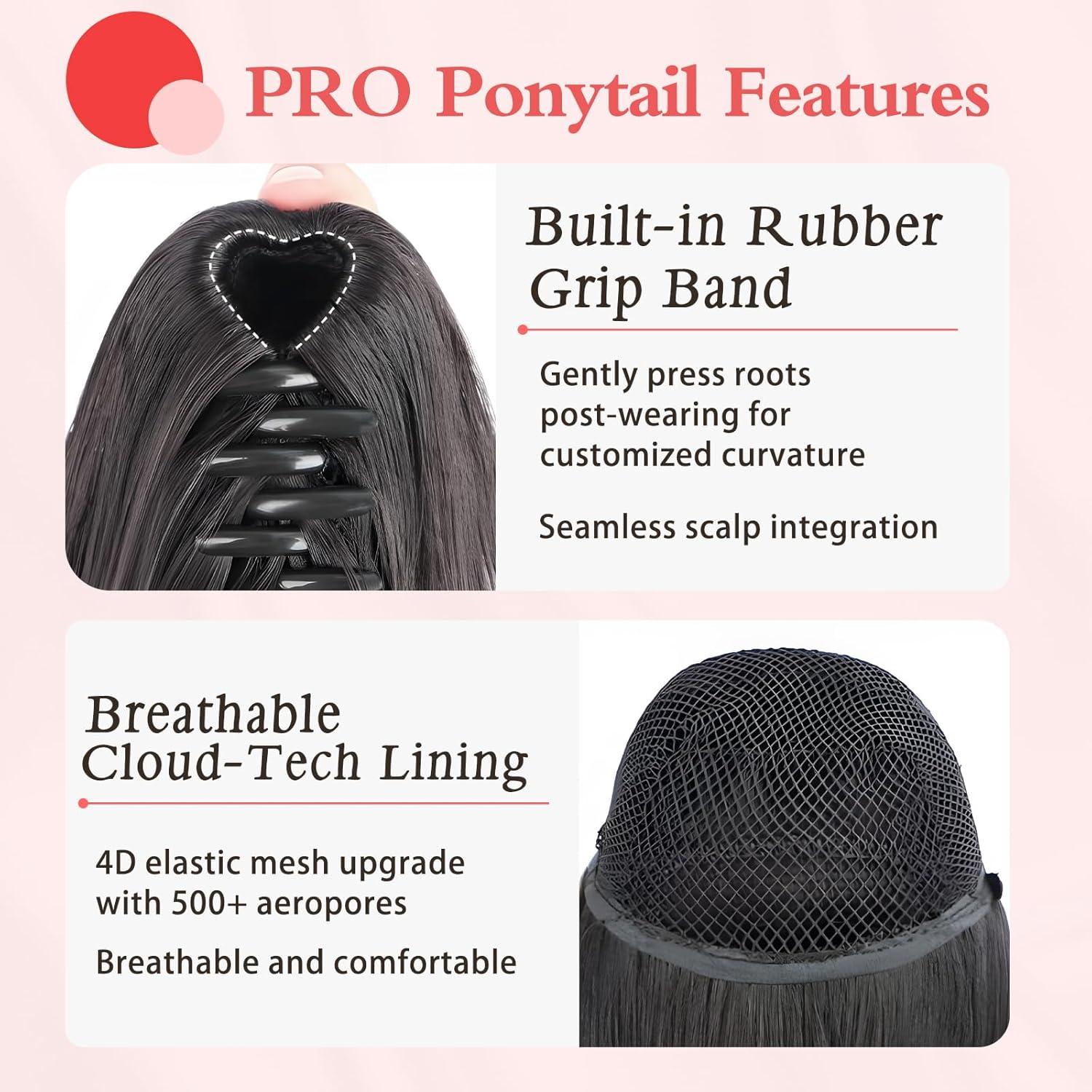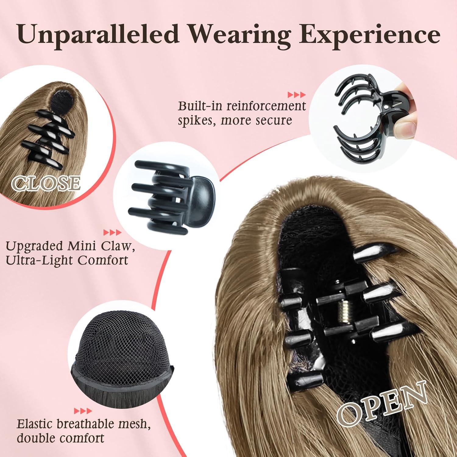 【Easy to wear】Clip and go for salon volume. Secure mini clip design—zero slippage, no tugging, even on fine hair. 3-second painless ponytail magic.