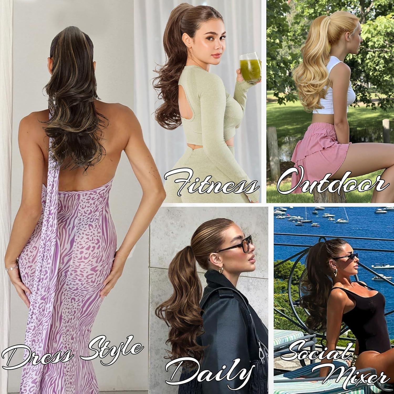 【Gorgeous Layered Wave】Designed with artfully layered waves that enhance your natural beauty, these premium ponytail extensions deliver charm with effortless grace. Perfect for: gym sessions, date nights, office day looks, festival-ready looks.
