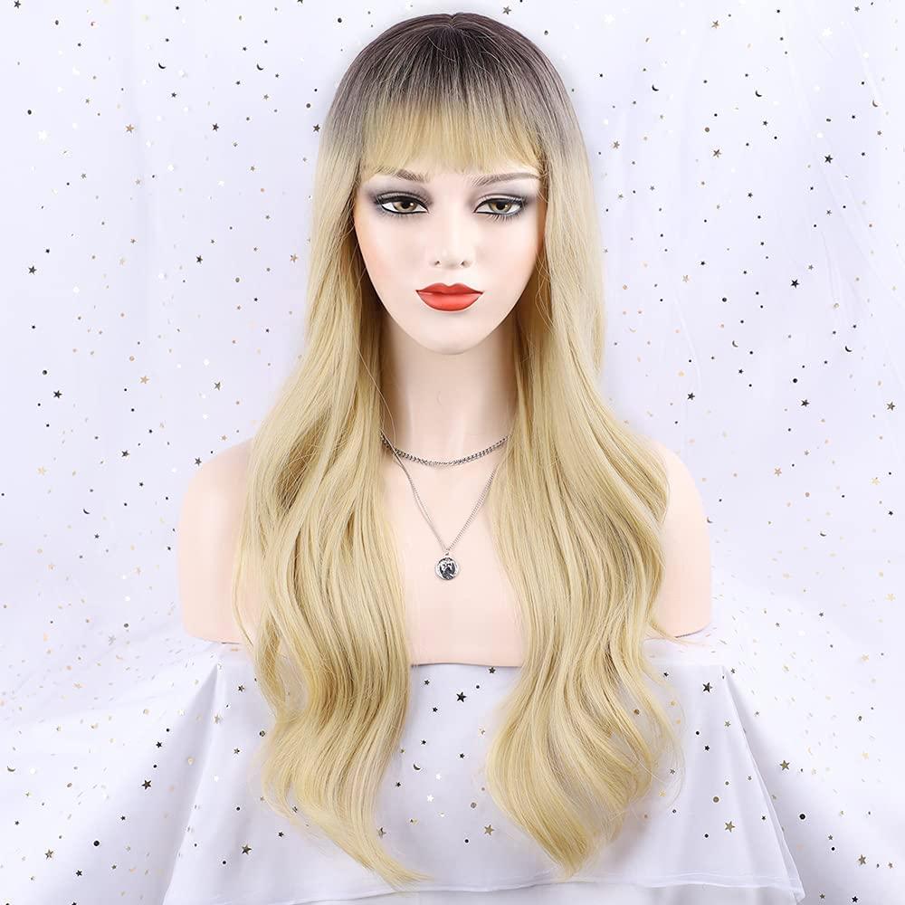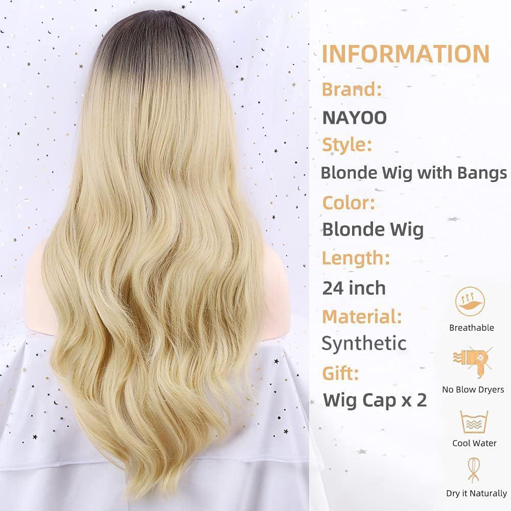 NAYOO Dirty Blonde Wave Wig with Bangs, Heat Resistant Long Wavy Synthetic Hair for Women, for Daily Use Party Halloween (Dirty Blonde,24Inch)(Dirty Blonde)