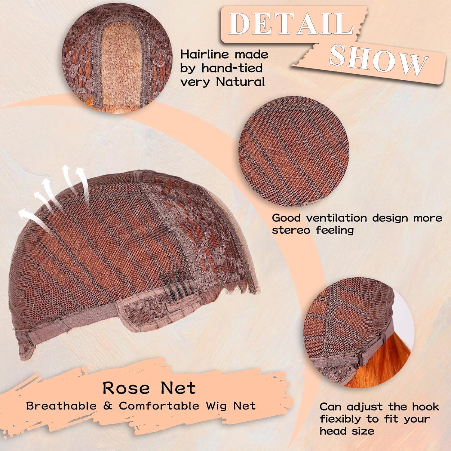 Strap And Rose-colored Breathable Net: Adjustable straps make this pink wig suitable for various head sizes and shapes, and it is equipped with an elastic and breathable rose net. You can wrap it in a fixed position to adjust different head sizes. Strong and durable , breathable, and comfortable, easy to adjust.