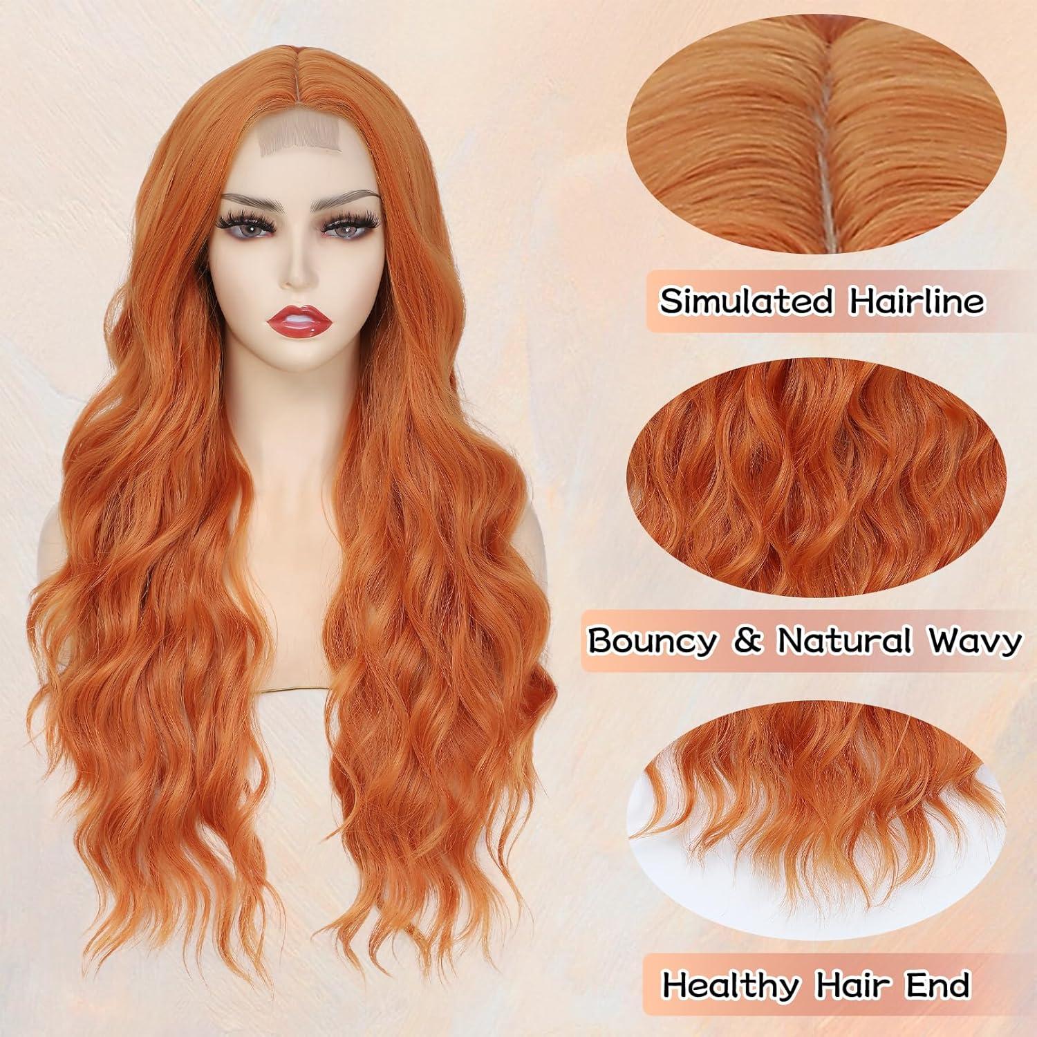 NAYOO Dirty Blonde Wave Wig with Bangs, Heat Resistant Long Wavy Synthetic Hair for Women, for Daily Use Party Halloween (Dirty Blonde,24Inch)(Orange)