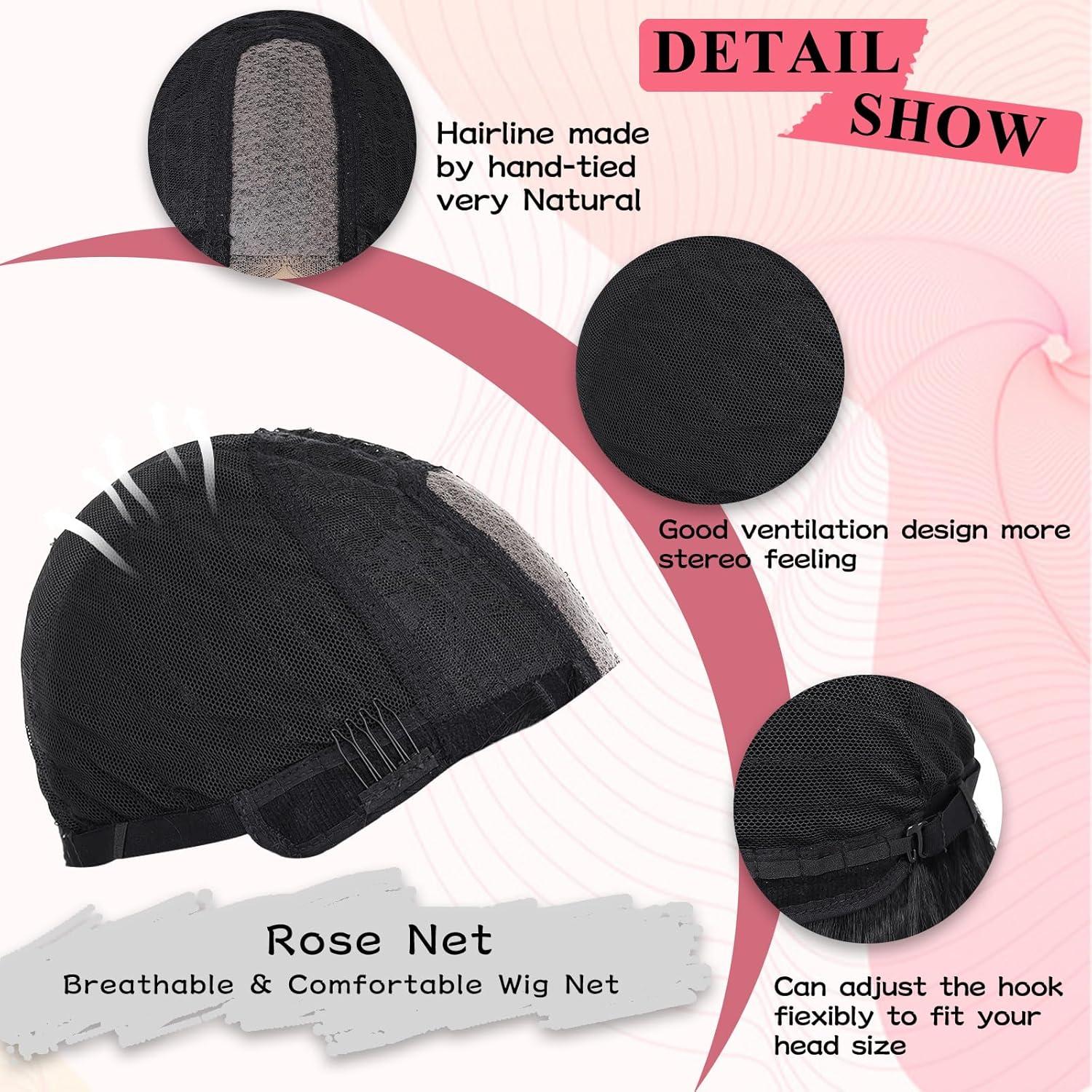 Strap And Rose-colored Breathable Net: Adjustable straps make this pink wig suitable for various head sizes and shapes, and it is equipped with an elastic and breathable rose net. You can wrap it in a fixed position to adjust different head sizes. Strong and durable , breathable, and comfortable, easy to adjust.