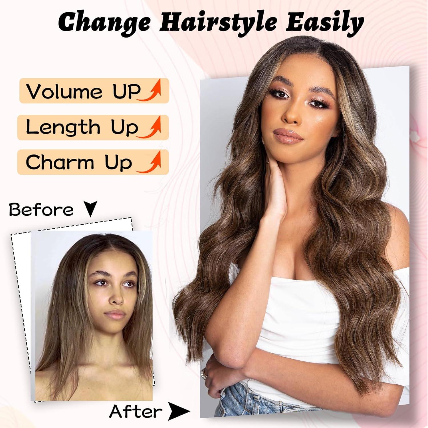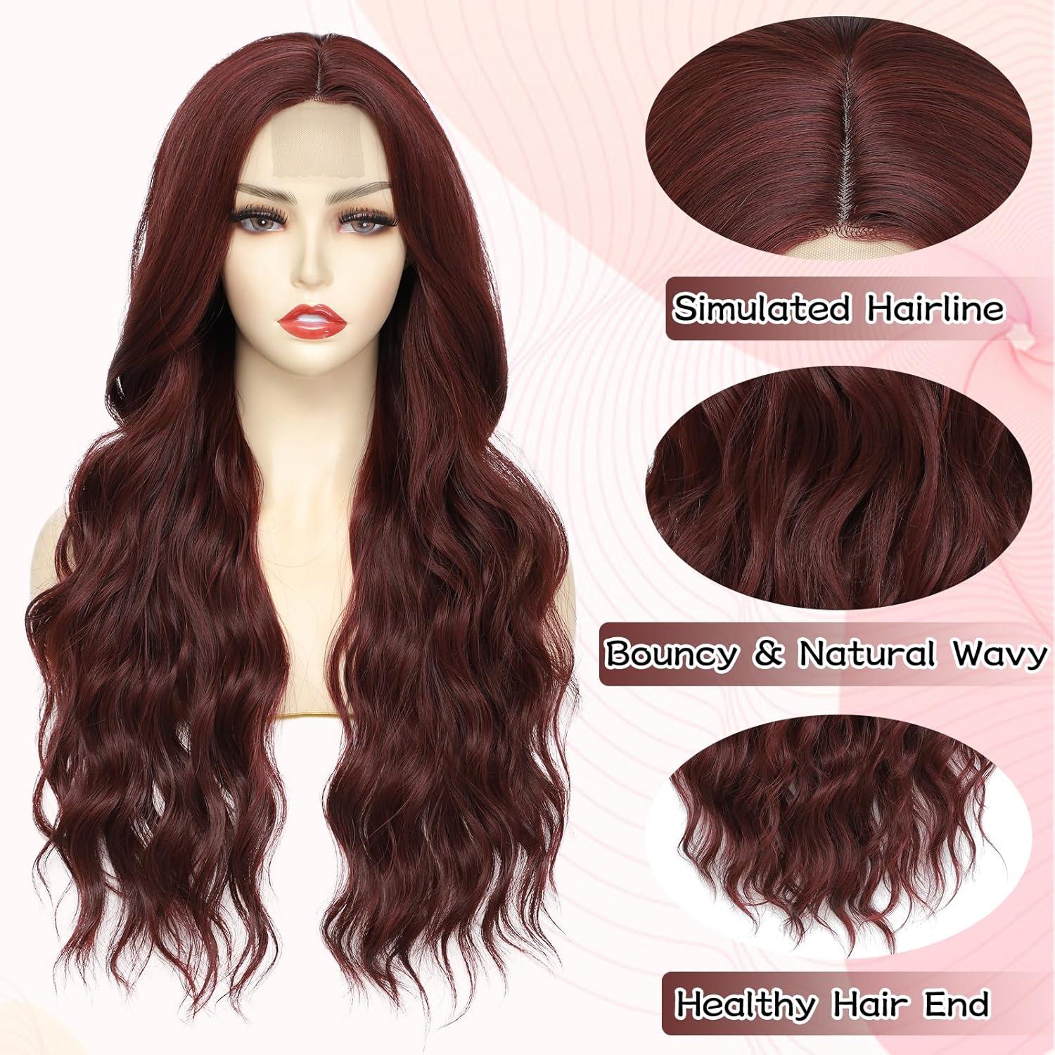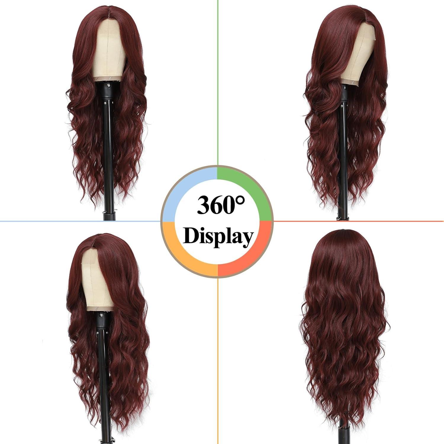 NAYOO Long Dark Brown Wavy Wig for Women Synthetic Curly Middle Part Wig Natural Looking Heat Resistant Fibre for Daily Party Use 26 Inch (Dark Brown)(Auburn)