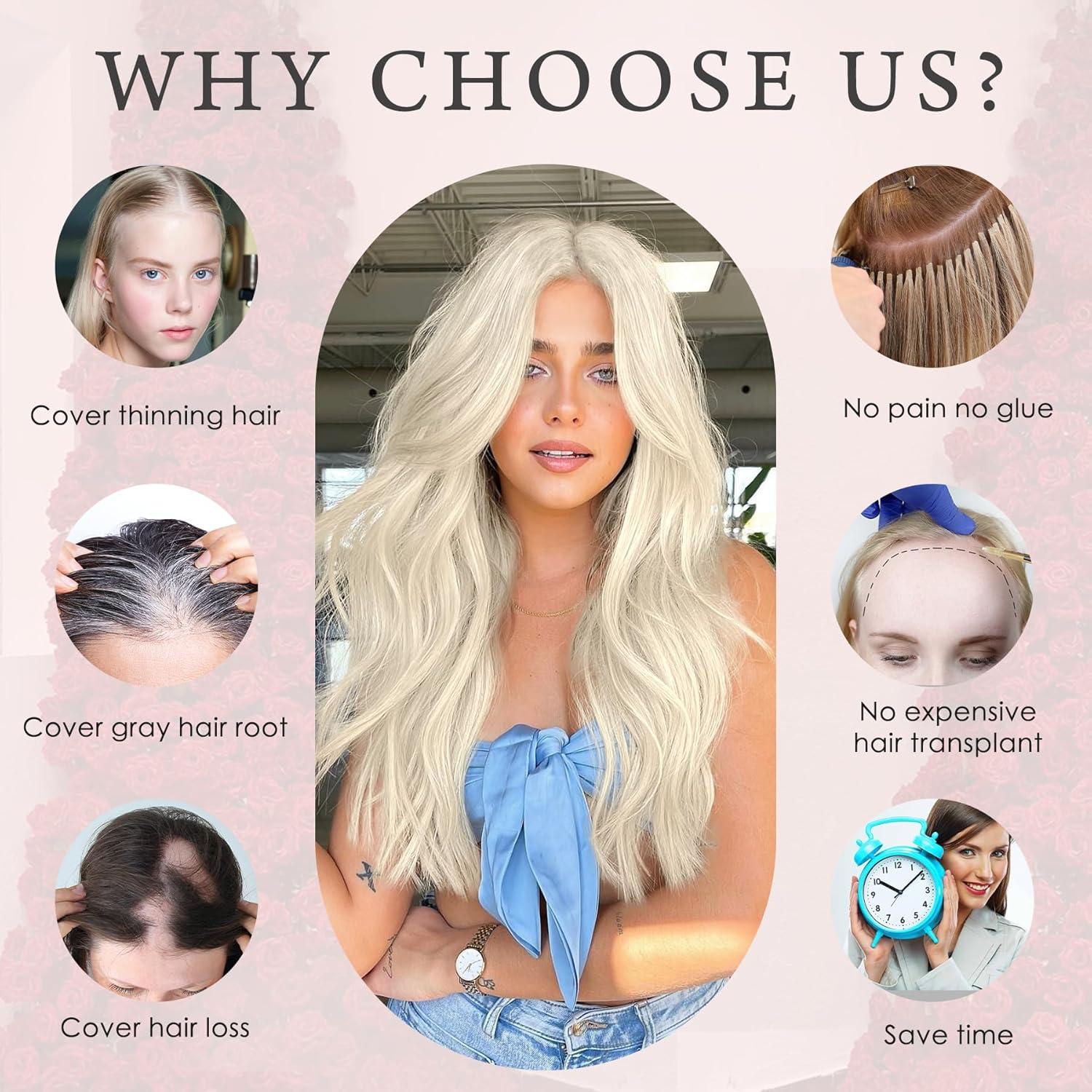 【Hair Toppers for Women】Women's hair toppers – instantly transform thin hair into voluminous waves to add fullness and vitality. They cover balding scalps, thinning hair, or gray hair without causing damage. Wavy and curly styles add body and bounce!