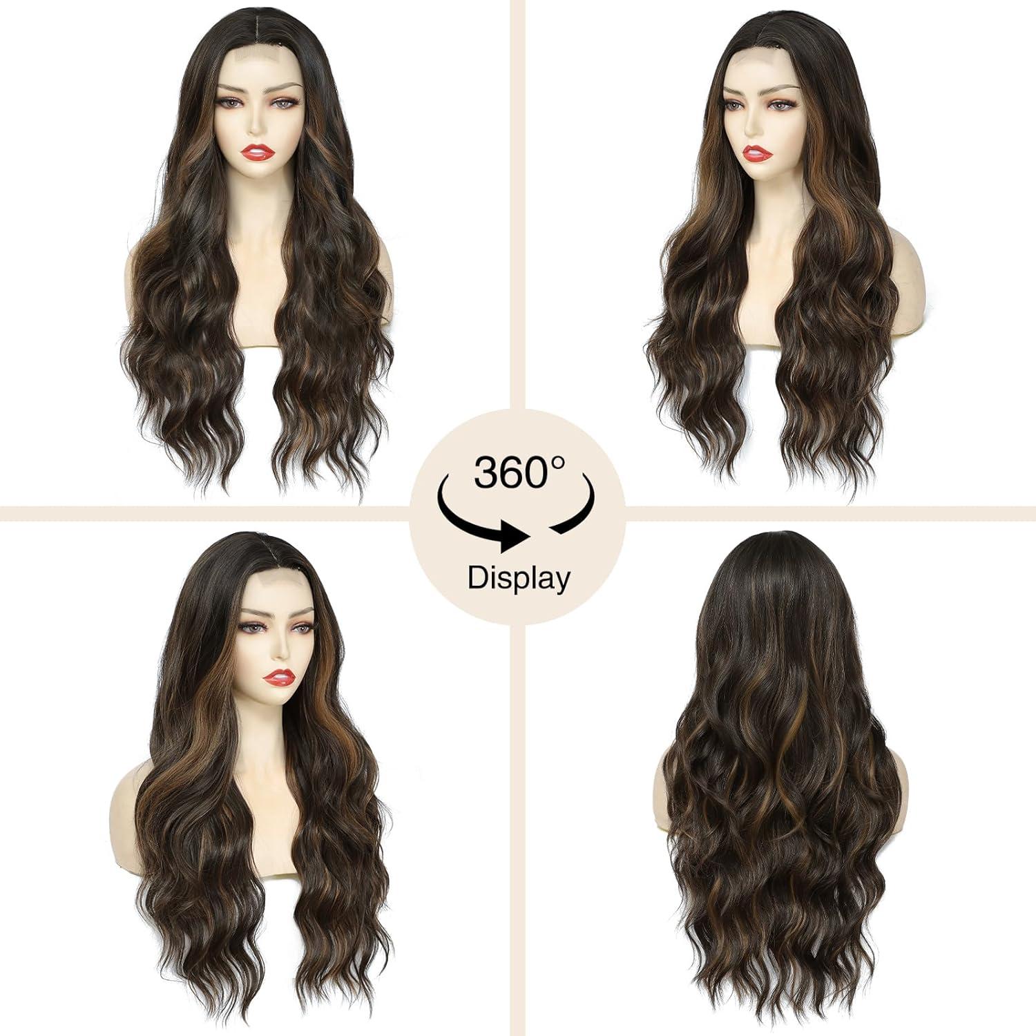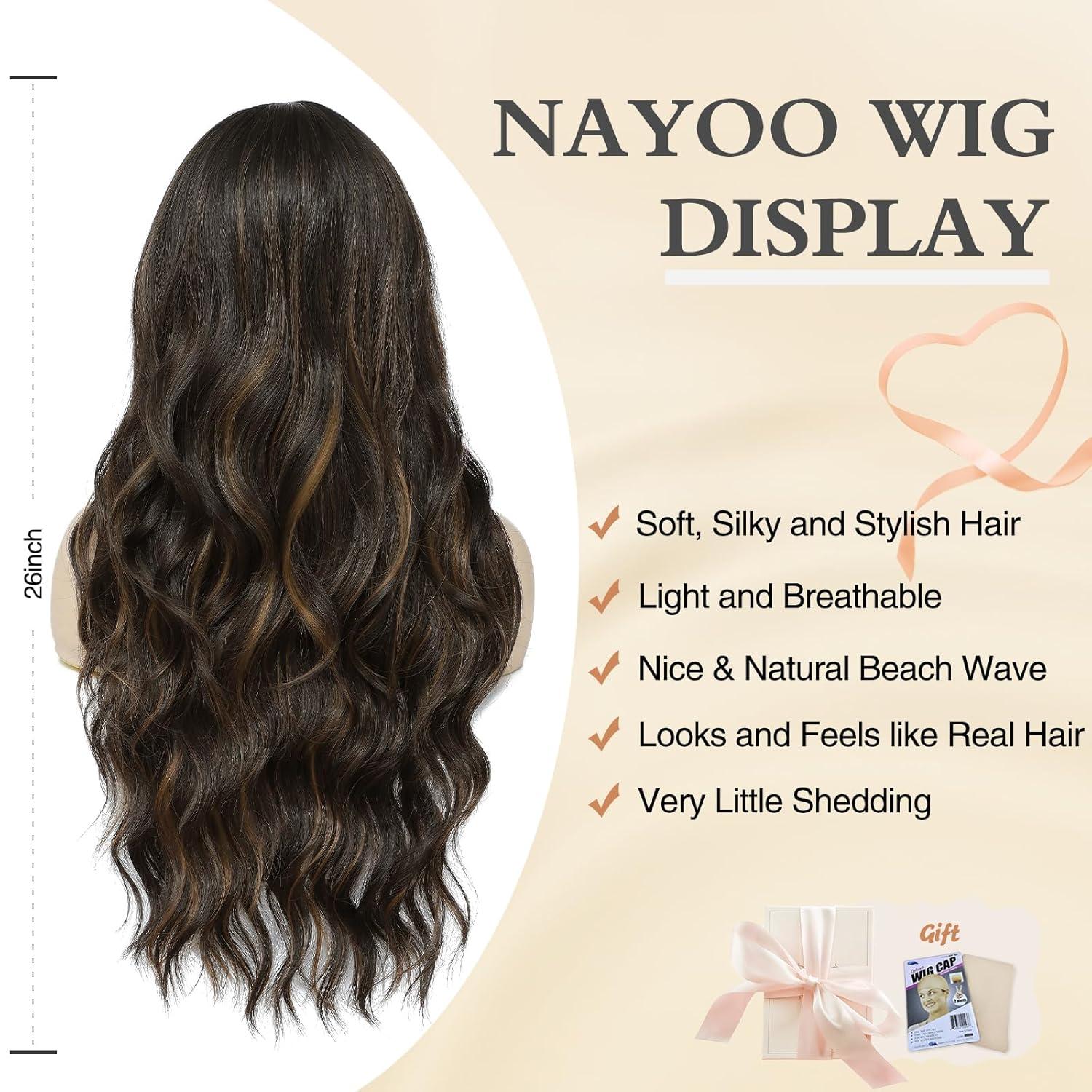 NAYOO Long Black Wig for Women – 26 Inch Long Black Hair Wigs, Natural Looking Black Long Wig, Heat Resistant Black Wavy Wigs for Halloween Cosplay Costume(Caramel Brownie)