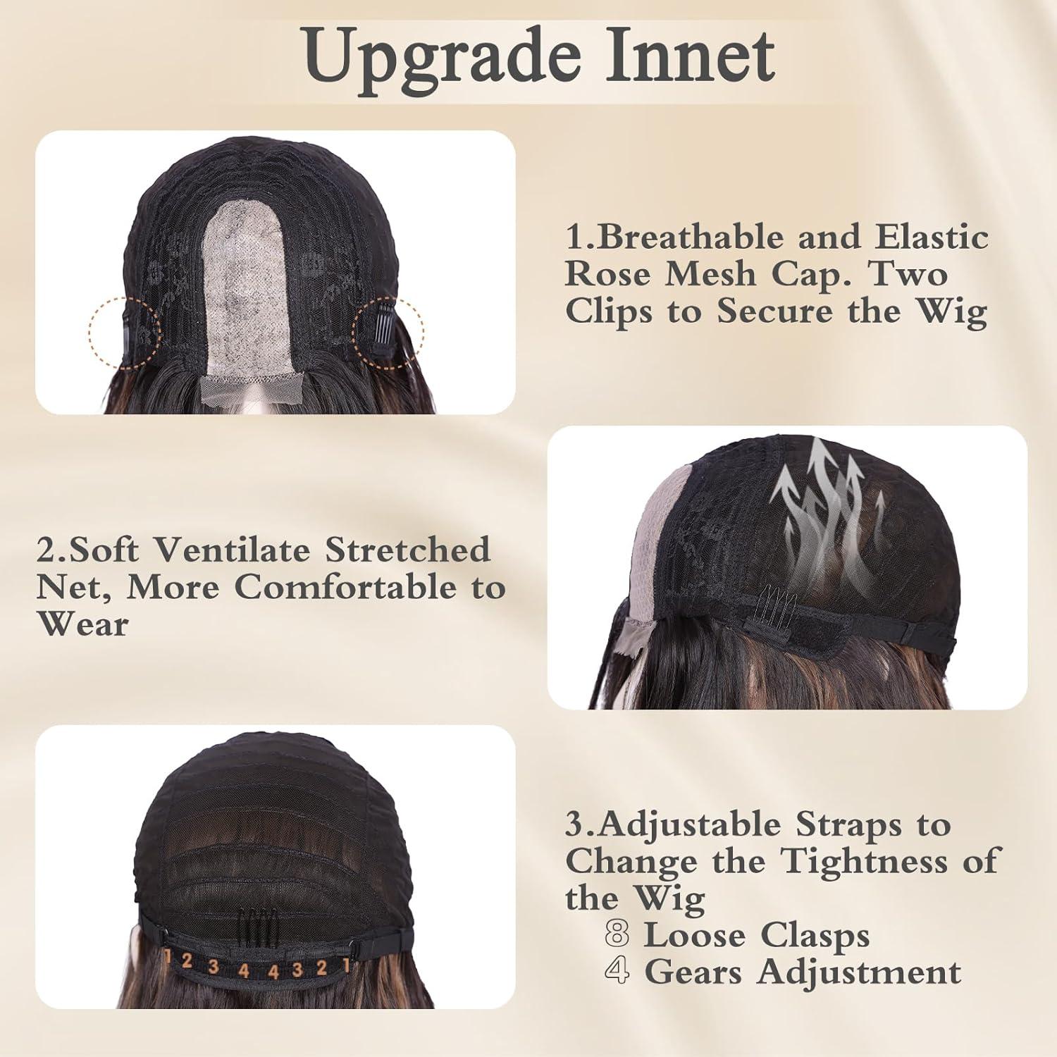 【Adjustable & Breathable Wig Cap】NAYOO black hair wigs for white women has two elastic bands which can be adjusted to fit your head shape. The breathable rose mesh cap makes you feel comfortable when wearing the wig, and it is easy to install and remove, saving you time.