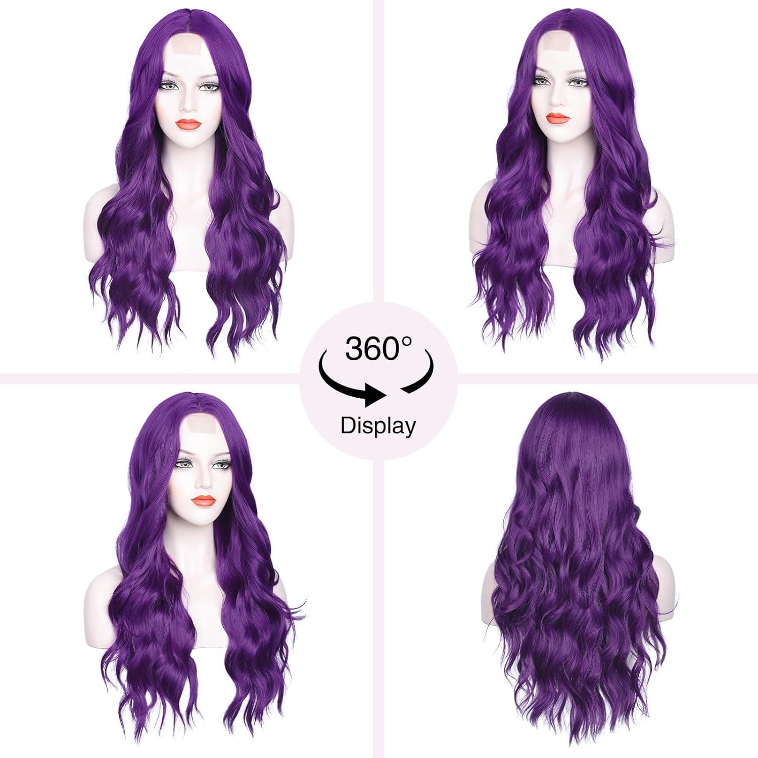 NAYOO Long Black Wig for Women – 26 Inch Long Black Hair Wigs, Natural Looking Black Long Wig, Heat Resistant Black Wavy Wigs for Halloween Cosplay Costume(Dark Purple)