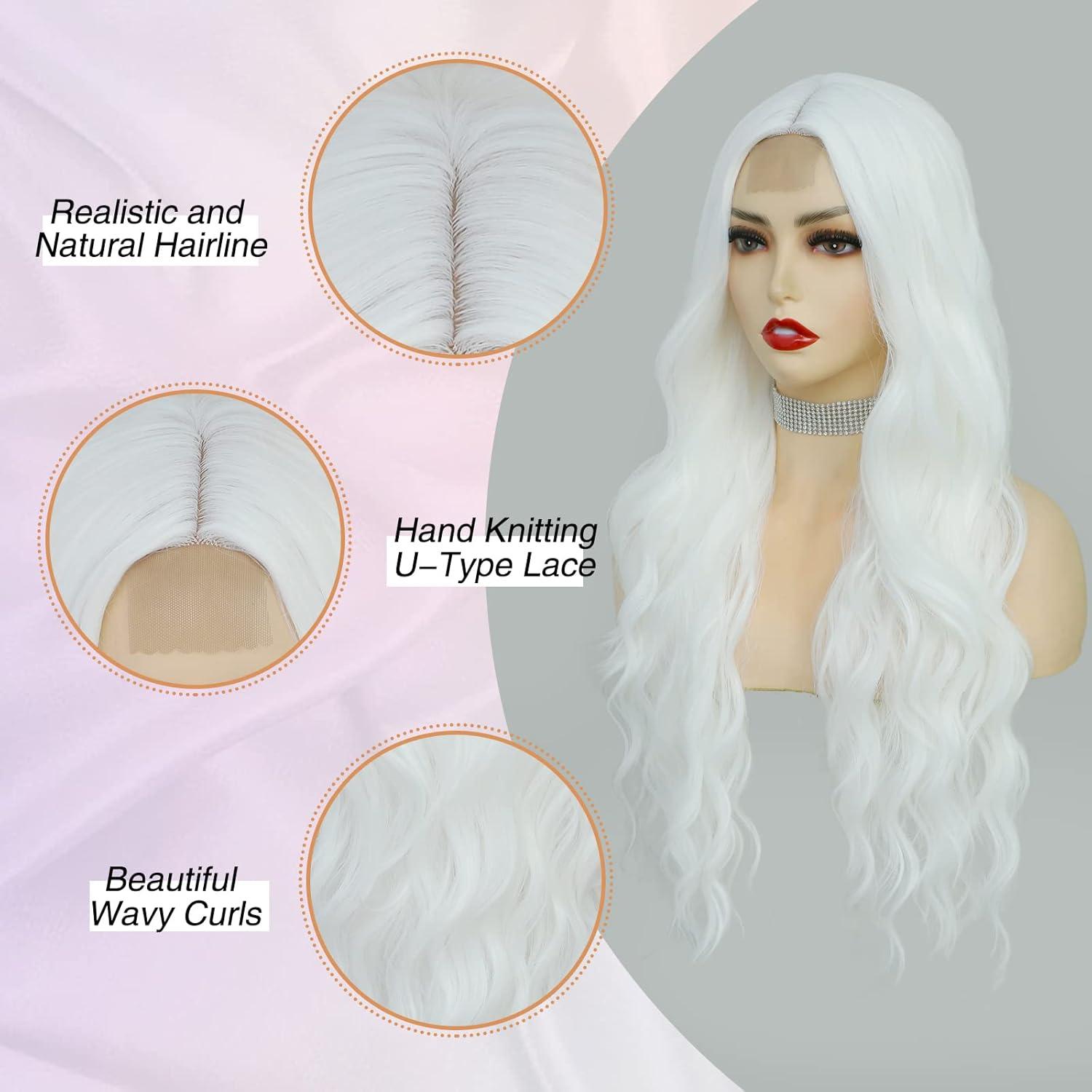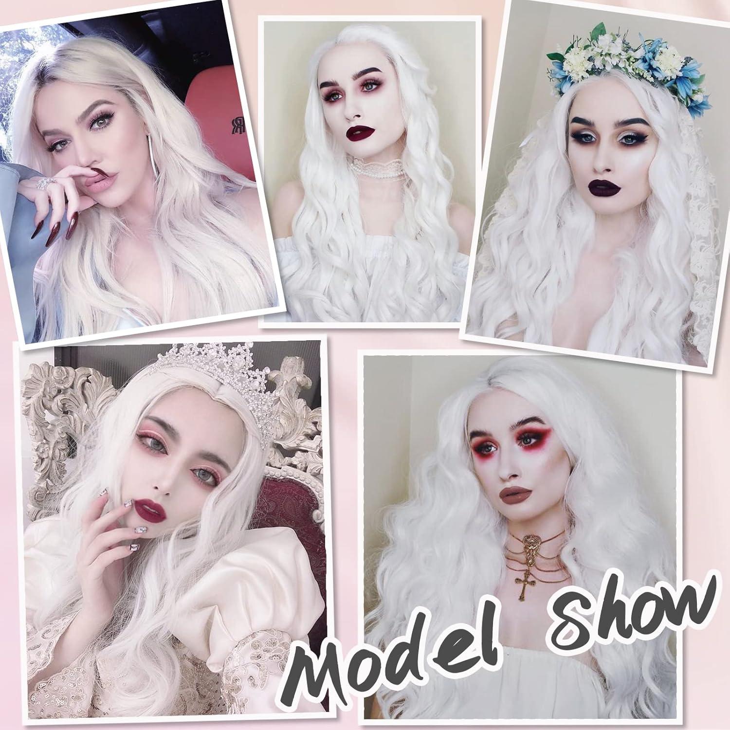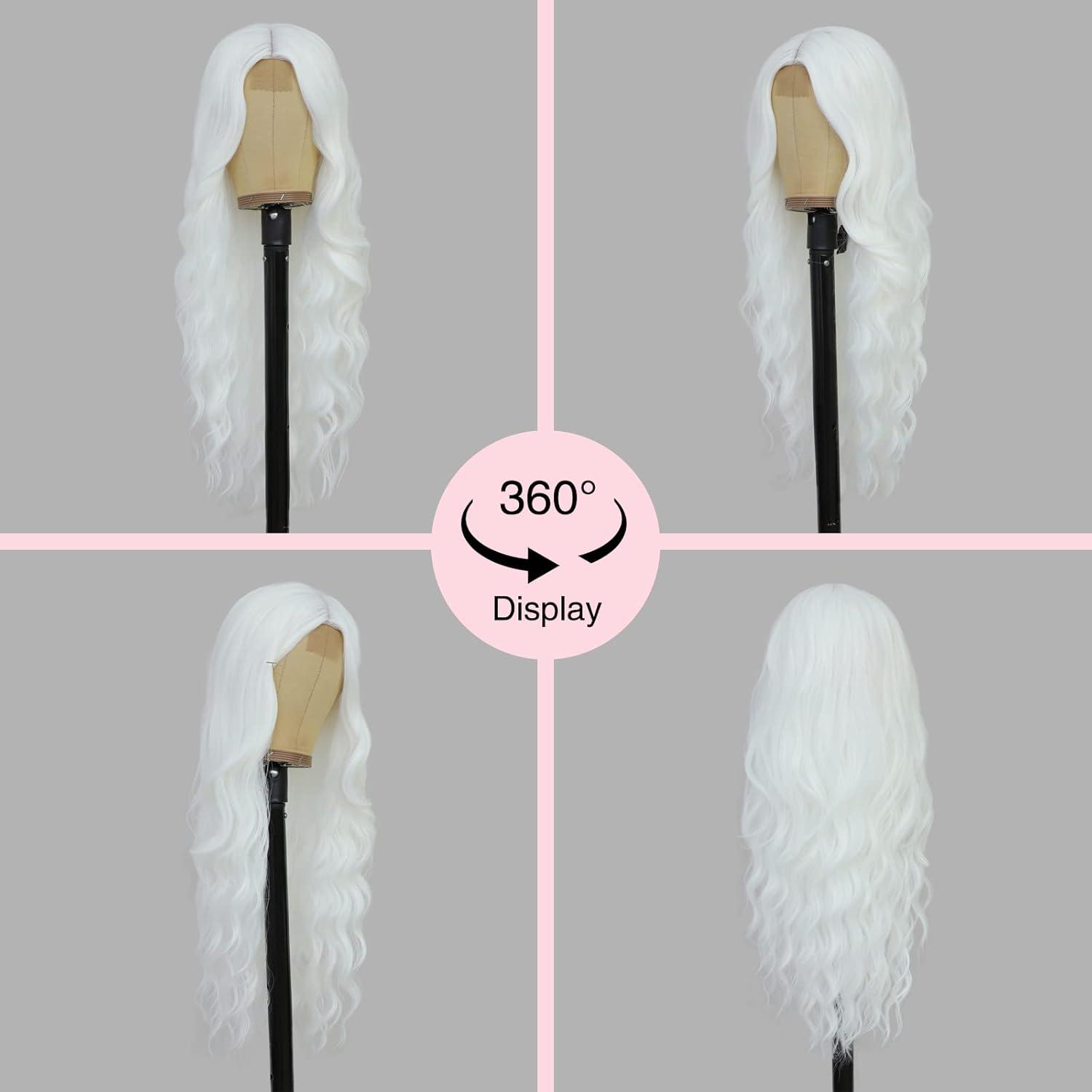 NAYOO Long Black Wig for Women – 26 Inch Long Black Hair Wigs, Natural Looking Black Long Wig, Heat Resistant Black Wavy Wigs for Halloween Cosplay Costume(White)