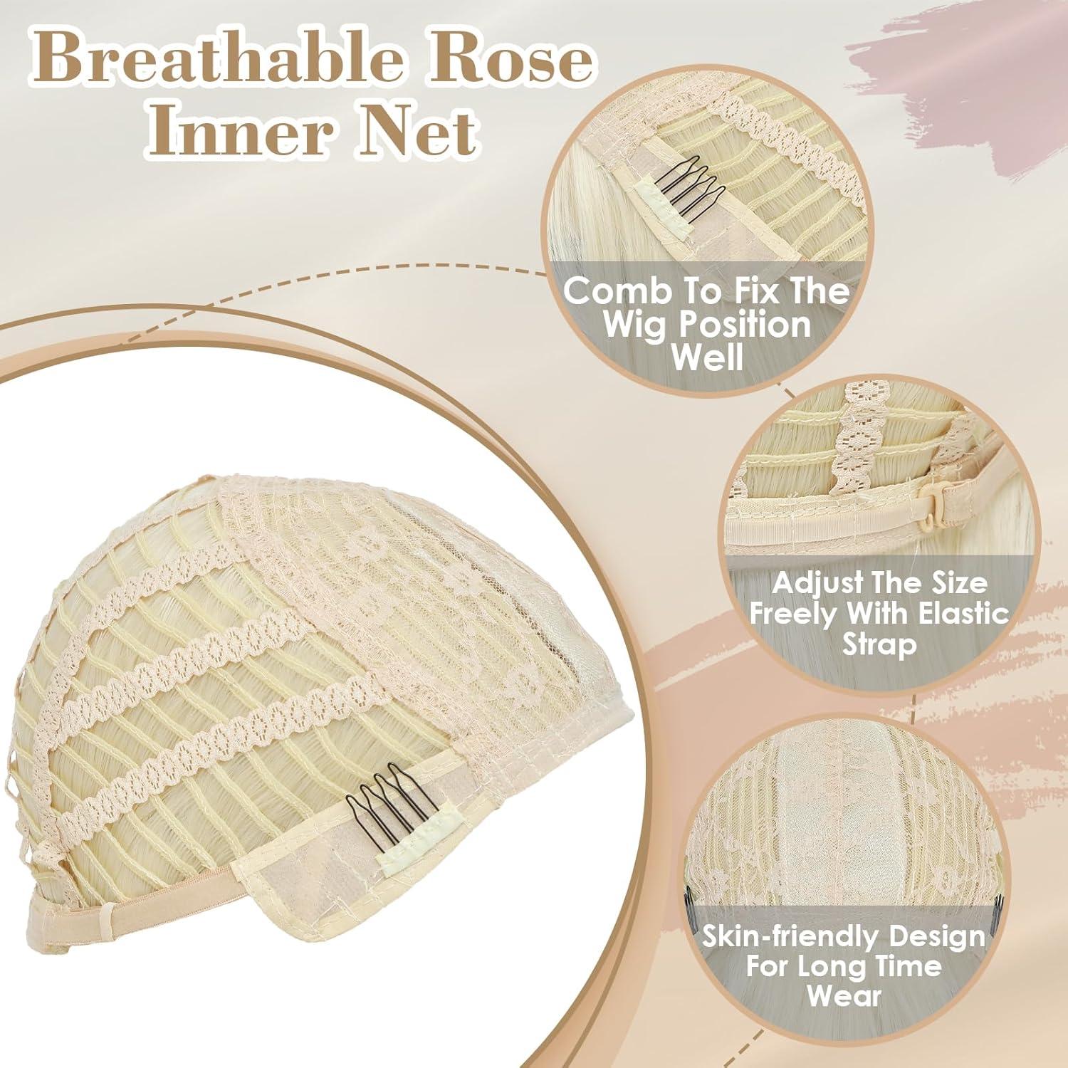 【Premium Wig Cap】100% breathable inner rose mesh fabric makes you feel comfortable while wearing. There are 2 adjustment straps on both sides of the bob wig, which can be wrapped around in a fixed position to adapt to different head shapes. Easy to install and remove.