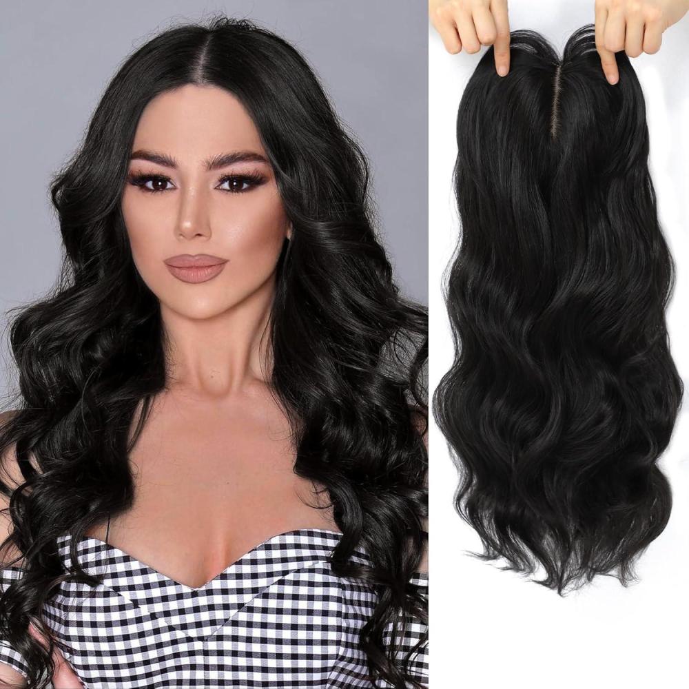 NAYOO Wavy Synthetic Clip In Hair Topper for Thinning Hair – 20inch Natural Black, Adds Volume(Natural Black)